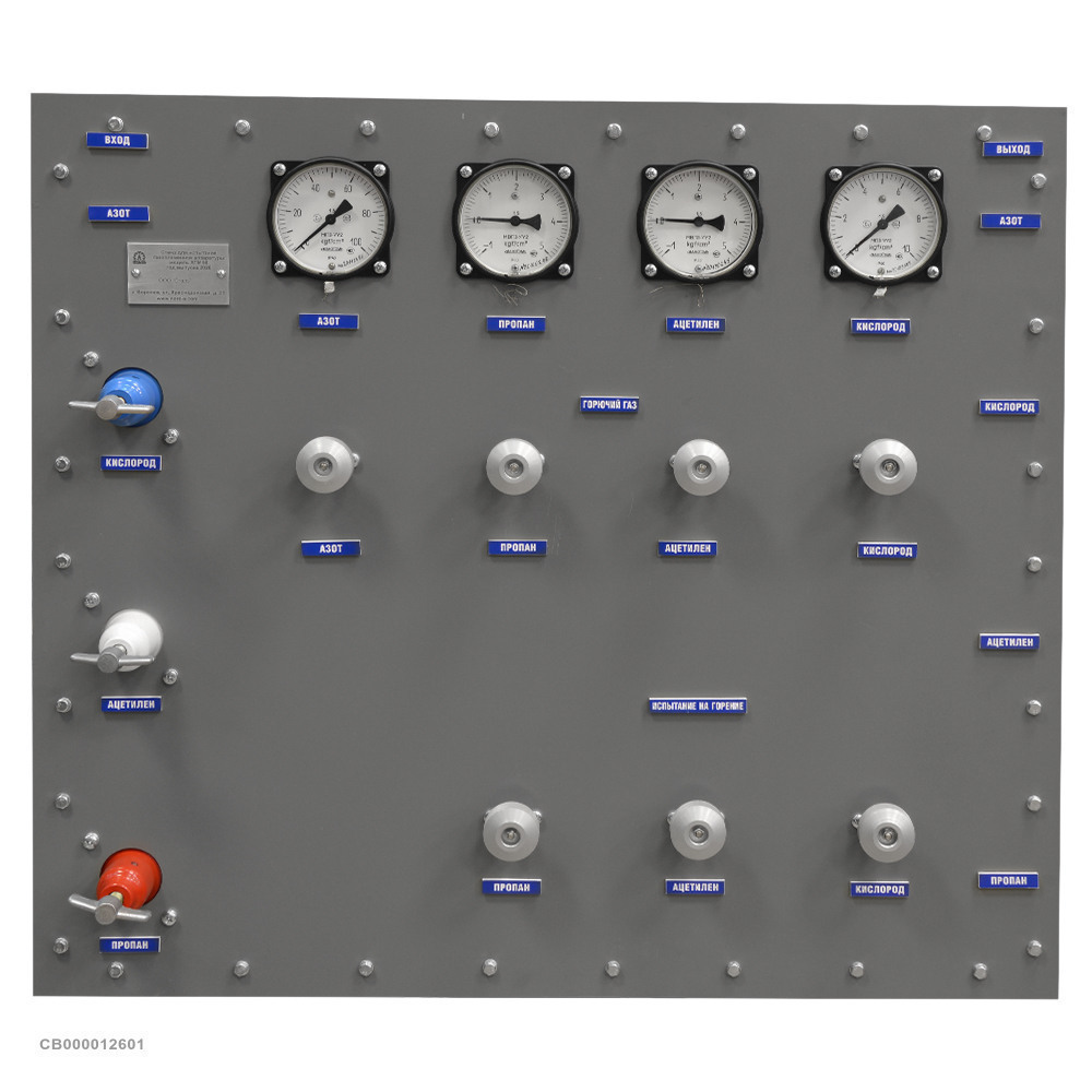 Стенд для испытания газопламенного оборудования предназначен для испытания резаков газовых и на жидком горючем, горелок газосварочных и газовоздушных, редукторов баллонных и сетевых, бачков для жидкого горючего, а также рукавов резинотканевых с Ду от 6 до 16 мм.