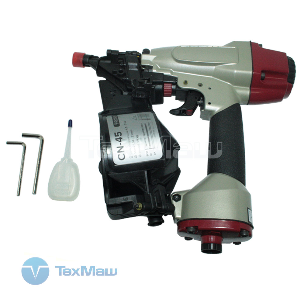 Нейлер пневматический FROSP CN-45 гвоздезабивной — удобный инструмент для скоростного забивания гвоздей. Этот пневмопистолет незаменим при выполнении строительных и ремонтных работ, монтаже различной сложности, изготовлении упаковки. Пневмомолоток имеет небольшой вес, позволяет быстро выполнять монтаж, сокращая время исполнения любых работ с использованием гвоздей. Пневмомолоток для забивания гвоздей данной модели оснащен обоймой вместимостью от 200 до 400 гвоздей, длина их 25—50 мм.