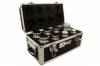 Набор калибровочных цилиндрических гирь с головкой используется для калибровки, поверки и проверки веса электронных весов и других средств измерений. Выполены гири из хромированной стали. Класс точности гирь в наборе - М1. Гири упакованы в алюминиевую коробку с ячейками в уплотнителе. Общий вес набора 15,5 кг.